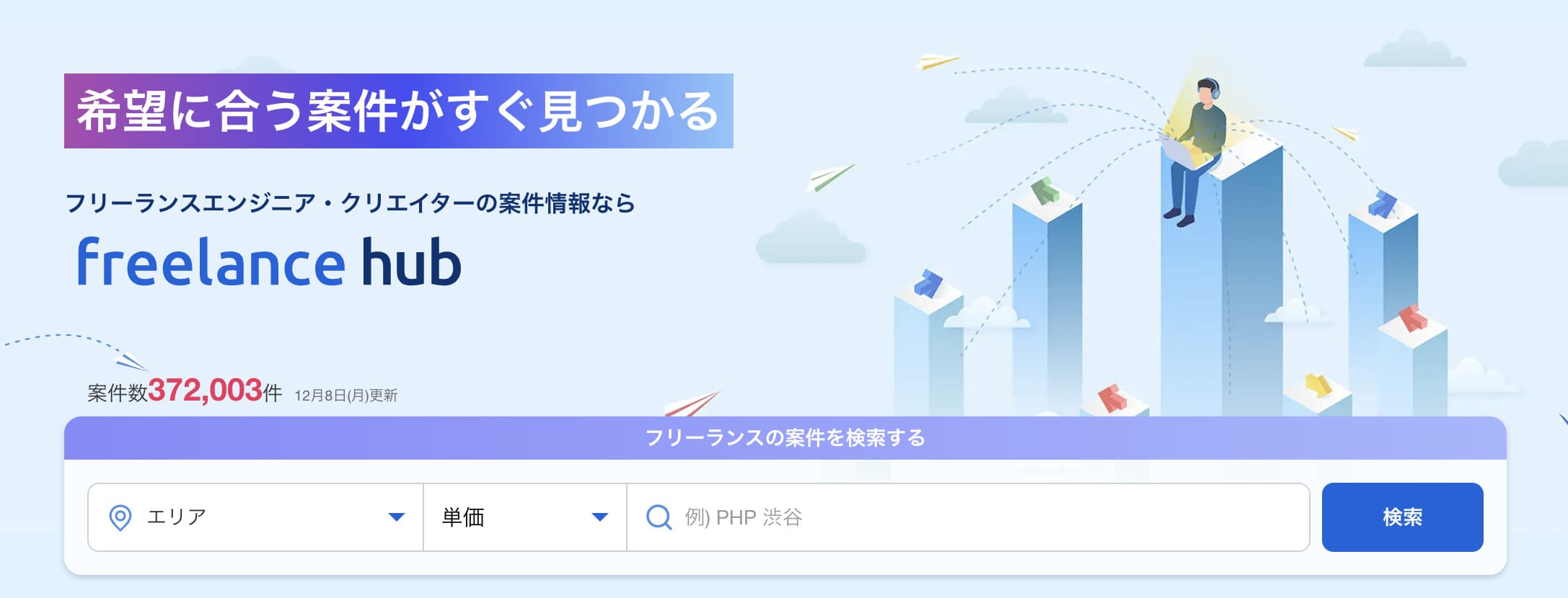 フリーランスハブは、フリーランスエンジニアやクリエイター向けの案件・求人情報を集約した検索サイトです。