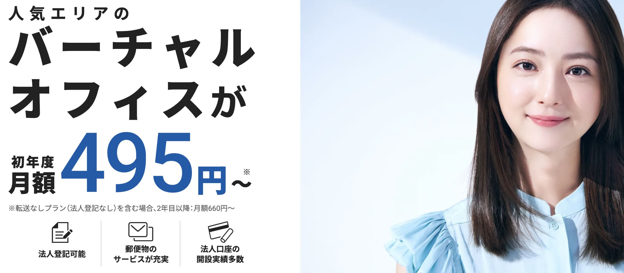 ・新設法人の5社に1社がGMOで登記している ・都内11ヶ所・全国主要都市の住所を月額660円で利用可能 ・業界最安の格安料金プラン ・初年度3ヶ月無料キャンペーン実施中 ・法人の銀行口座開設実績が豊富 |